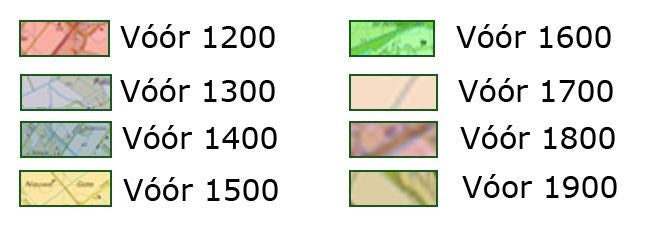Elke kleur geeft een bepaalde eeuw aan waarin de polder is bedijkt.