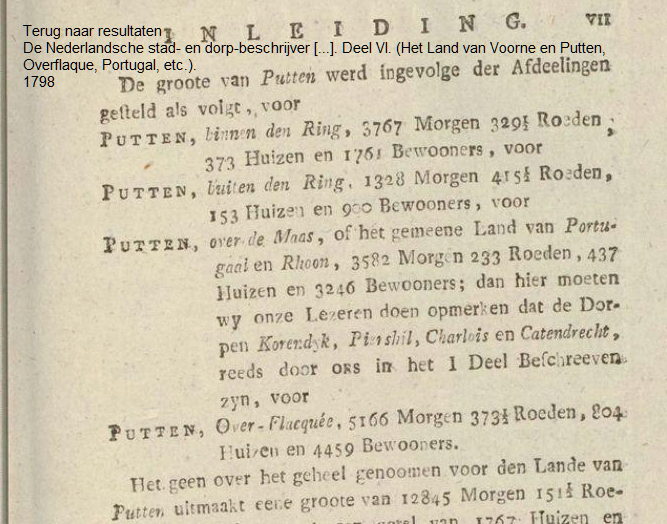 De Nederlandsche stad- en dorp-beschrijver [...]. Deel VI. (Het Land van Voorne en Putten, Overflaque, Portugal, etc.).