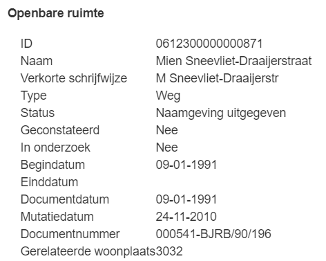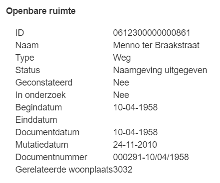 Binnenkort zal de nieuwe huisnummering en de plaatsing van straatnaamborden in de gemeente een feit zijn , waarmede aan de doorlopende nummering een einde zal komen . Dat dit een grote verbetering zal zijn , is buiten kijf . Hieronder volgen de nieuwe straatnamen . De tussen haakjes geplaatste woorden duiden de oude straatnamen aan , die thans nog worden aangehouden .