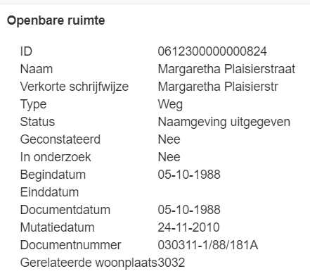 Margaretha Plaisierstraat (Maaswijk, Spijkenisse). Deze is vernoemd naar Margaretha Plaisier (1895-1986), die ruim 36 jaar wijkverpleegster was van het Groene Kruis in Spijkenisse. Op 5 mei 1965 kreeg zij op voorstel van de burgerij de Jan Campertonderscheiding uitgereikt. Bron: De feestrok : herinnering in stof en steken aan de oorlog in Spijkenisse en Hekelingen / Els de Baan. - Spijkenisse: Centrale Bibliotheek Spijkenisse, 1997, p.11.